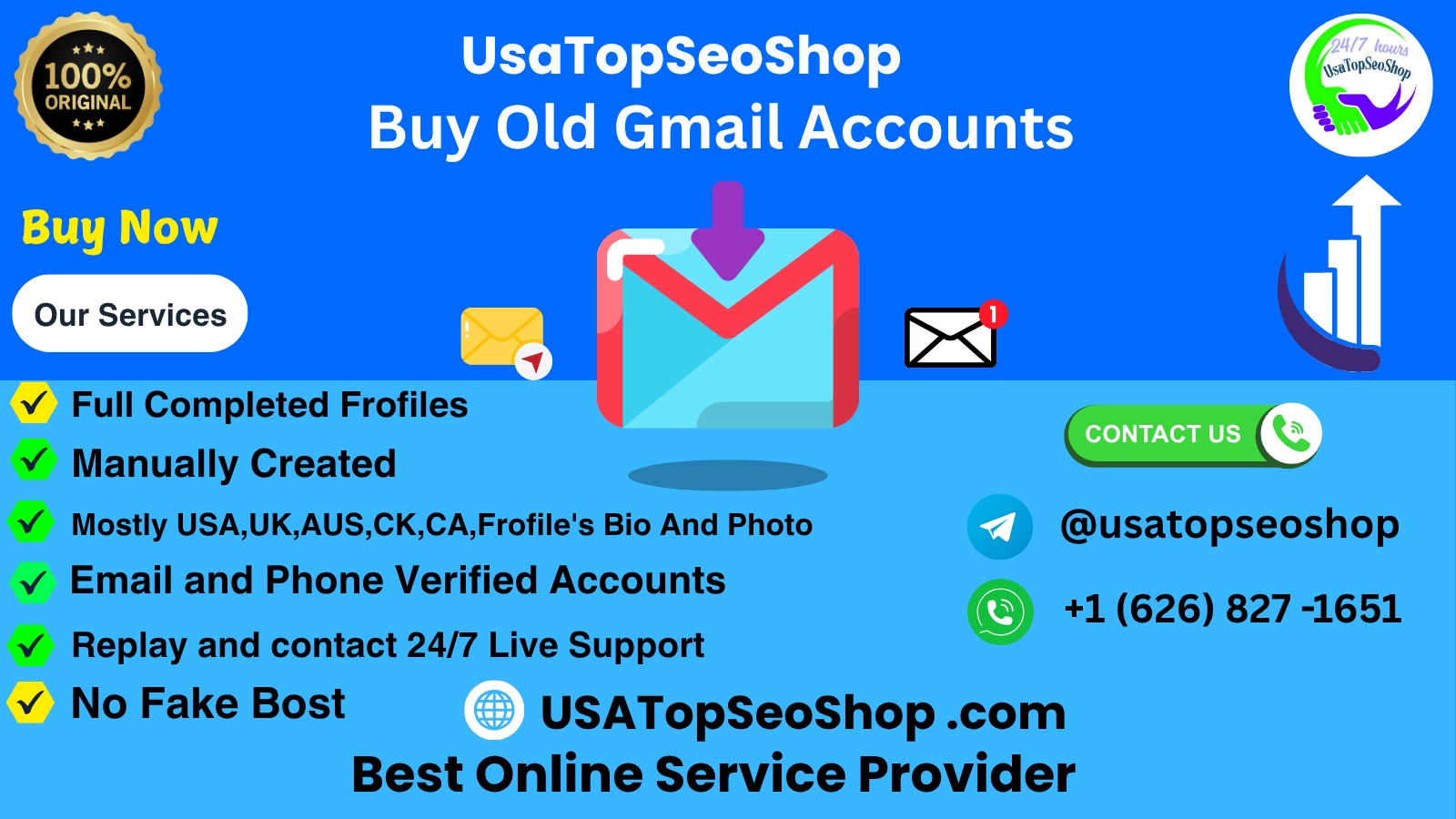 WhatsApp: +1 (626) 827 -1651Buy Old And New Gmail Accounts Purchasing old Gmail accounts means acquiring pre-established email accounts that have been active for a significant period. These aged accounts are highly valued because they are typically seen as more trustworthy, less likely to be flagged as spam, and often come with benefits such as established history and higher sending limits. from usatopseoshop.com https://usatopseoshop.com/product/buy-old-gmail-accounts/ ➤Details of Our Gmail Accounts ➤ PVA, bulk, fresh, and aged Gmail accounts ➤ Manually created High-Quality Old Gmail Accounts ➤ USA, UK, CA, and AU Gmail accounts with English names ➤ 100% satisfaction guaranteed ➤ Stable and verified ➤ Recovery email attached ➤ Phone Verified Accounts ➤ 24-7 to active customer care service If you want to more information just contact now here 24 Hours Reply/Contact Email: usatopseoshop@gmail.com Telegram: @usatopseoshop Skype: USTop SeoShop WhatsApp: +1 (626) 827 -16510 Comments 0 SharesPlease log in to like, share and comment! -